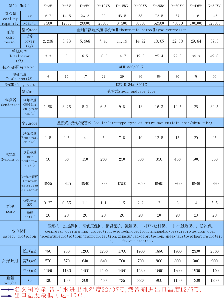 8.水冷及風(fēng)冷式規(guī)格齊全(功率:3HP-300HP,制冷量從600W至34800W)專門設(shè)有適合各行業(yè)機(jī)械設(shè)備配套之機(jī)型,可按客戶要求特別制造。