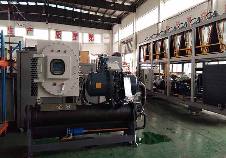 6、低溫型水冷低溫螺桿式冷水機:出水溫度為-40℃~-120℃,可提供-40℃~-120℃酒精或二氯甲烷溶液冷凍水。采用二元復(fù)疊或三元復(fù)疊螺桿式制冷系統(tǒng),能效比高,運行穩(wěn)定等特點。