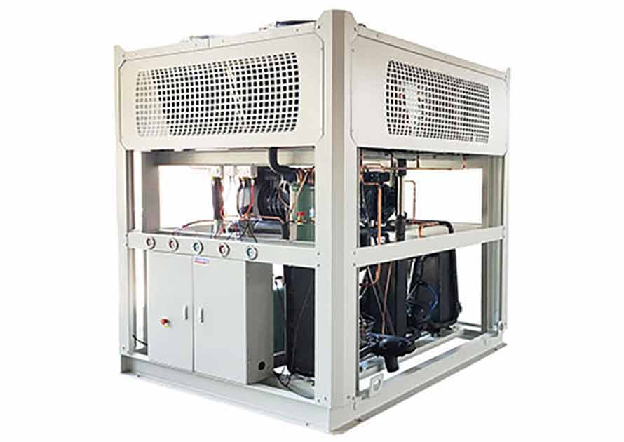 康士捷生產(chǎn)的化工行業(yè)用風(fēng)冷式復(fù)疊冷凍機(jī)組控溫范圍可在-40度至-120度。